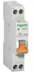 Дифференциальный автоматический выключатель АД63К, 1P+N, ток 10 А, Кривая C, ток утечки 30 мА, тип AC,